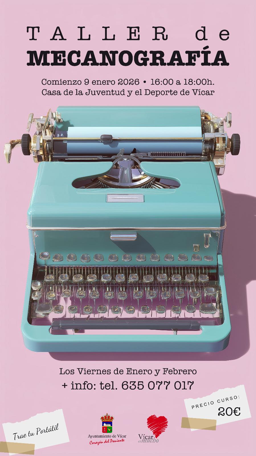 Vícar lanza un taller práctico de mecanografía